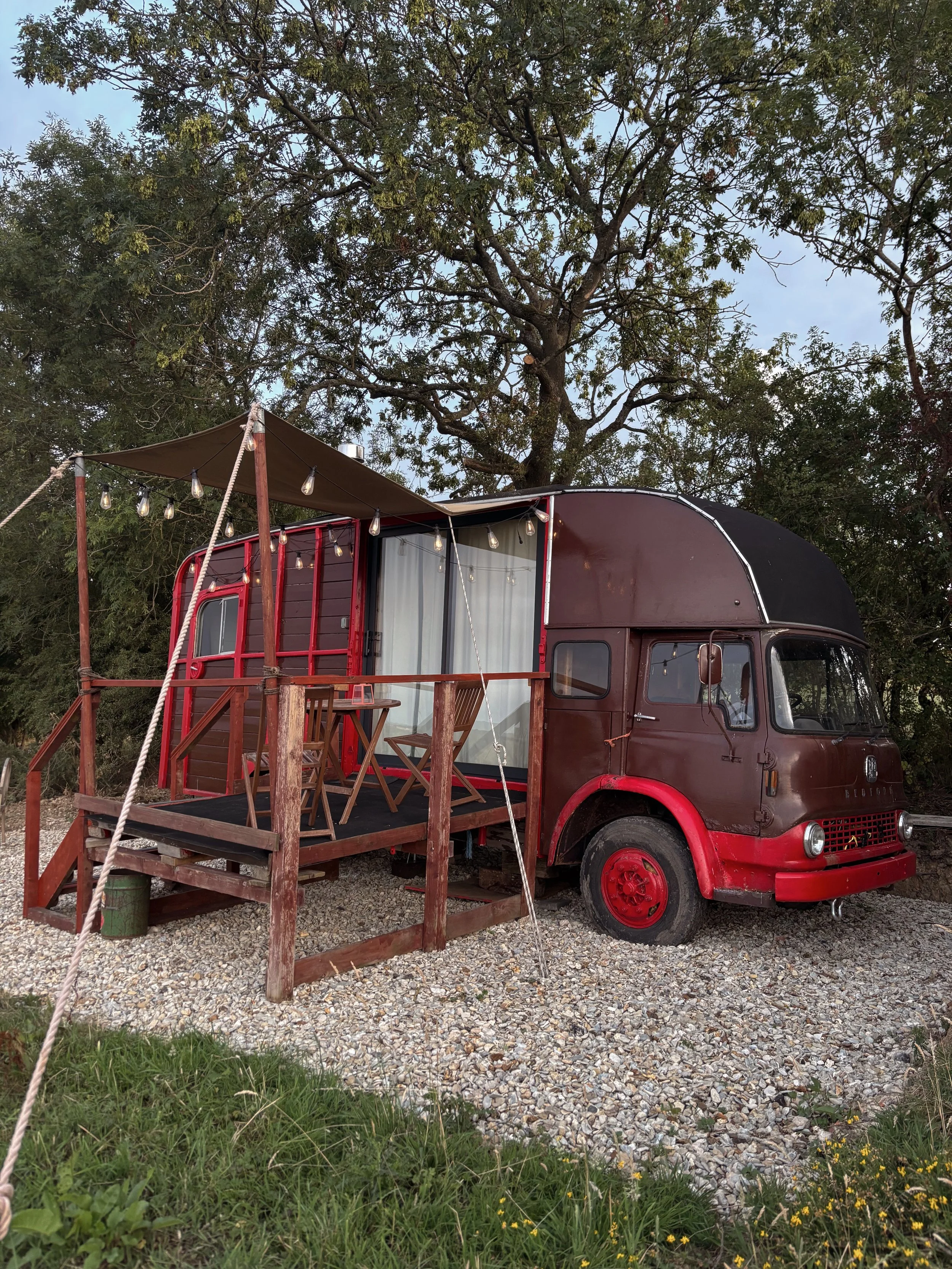Stay in Our Cosy Vintage Horse Lorry Glamping Retreat. Tucked away in a peaceful corner of our campsite, this beautifully converted vintage horse lorry offers a unique and cosy one-bedroom escape. Thoughtfully designed with everything you need for a comfortable getaway, it’s the perfect place to relax, unwind, and soak up the countryside.